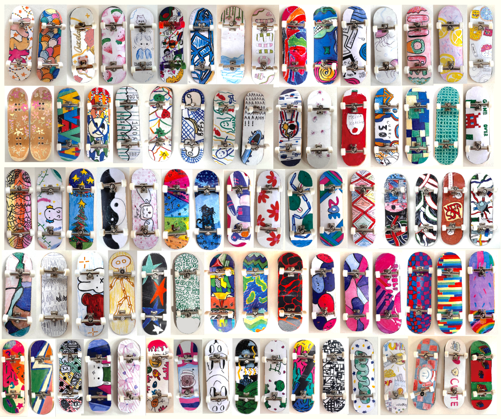 Year 6’s created a paper toy design featuring a character with exaggerated facial features, and a playful expression. Each student will reciece a blank template which includes glue tabs and sections marked for assembly. This is Mr. Gadbury’s design below.